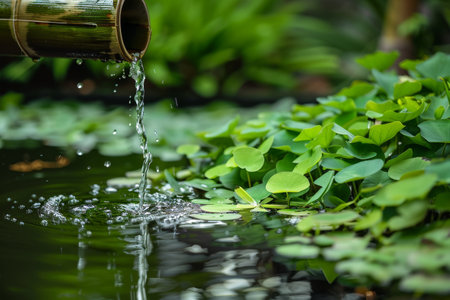 Tranquil water garden with bamboo water feature
