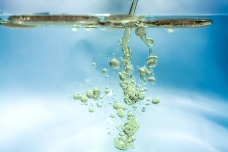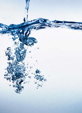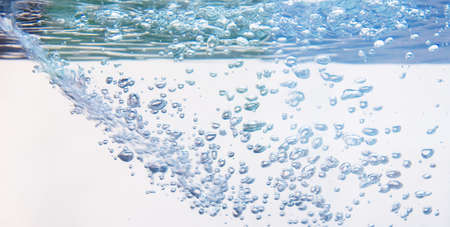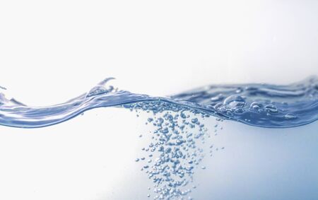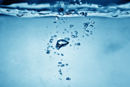 Clear water with air bubbles on blue background