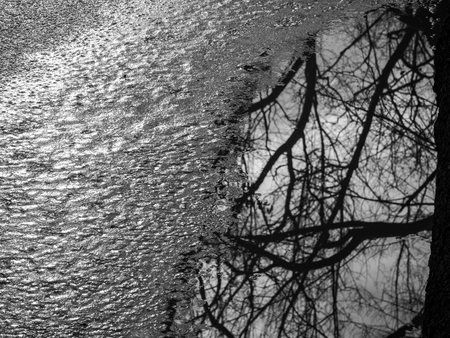 Ice and Water, Detail Abstract, Black and White, Reflections in Water