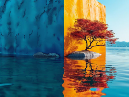 Colorful Contrasts Captivating Visual Harmony Between Digital Manipulation and Nature Elements in the Picture Show Environment