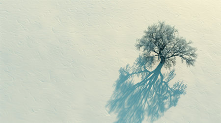 Solitary Tree Casting Long Shadow on Snowy Terrain