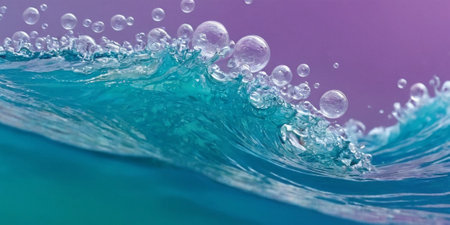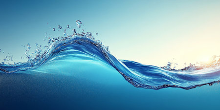 A clean, minimalistic background image of water with small waves and splashes. Generated by artificial intelligence.