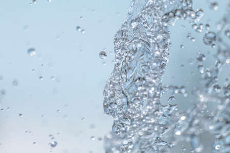 Abstract an outbreak of water. Splash of water close-up. Frozen water drop photographed at high speed. Slow dripping of liquid with air bubbles. Nature backgrounds or Wallpaper.Frozen liquid splashes