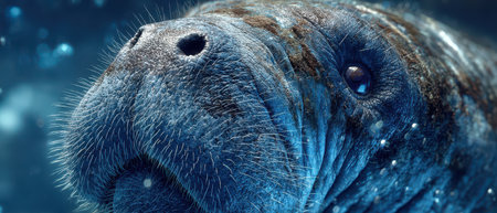 An up-close view of a dugong gentle features, highlighting its marine conservation importance.