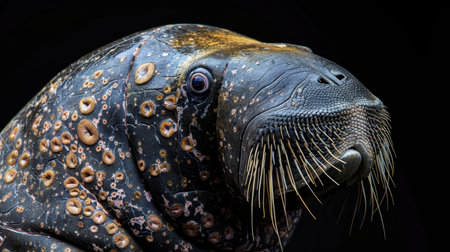 Portrait of a walrus on a black isolated background.