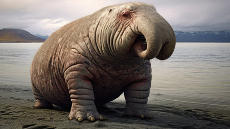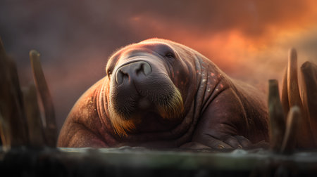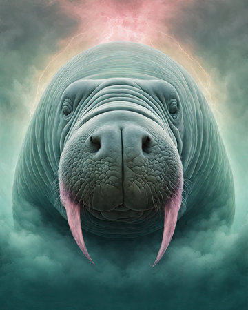 Portrait of an adult walrus in the clouds, 3d render
