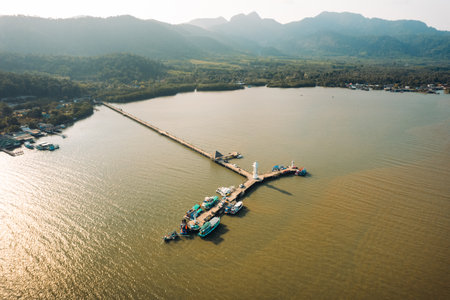 Laem Son National Park Pier in Kapur District, Ranong, Thailand from aerial view by drone.