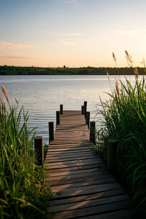 Lakeside wooden boardwalk natural scenery