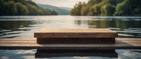 AI Generated. A podium stage in river for product display