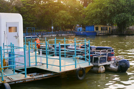 Perai, Penang/Malaysia - Mar 02 2020: Jetty at Bagan, Sungai Perai. Background is container depot.