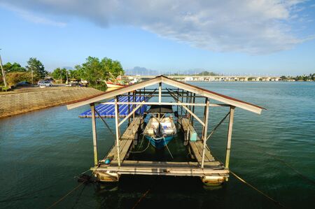 Places to shade the boat on the water. This place was built floats and provides temporary shade to the boat. The photo was taken at Kuala Terengganu, Terengganu, Malaysia.
