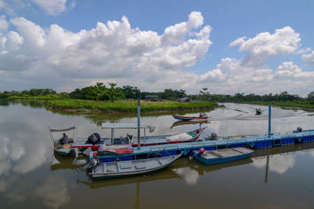 Penanti, Penang/Malaysia - Jul 01 2018: Fishing boat move at river during blue sunny day.