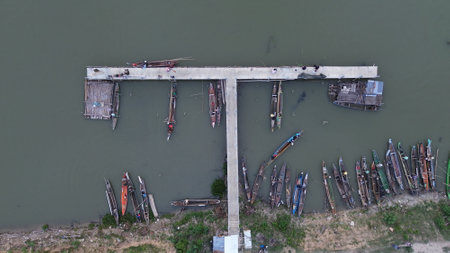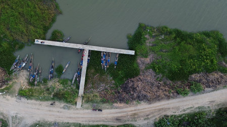 Aerial view of boat docks along Limboto lake, Gorontalo province, Indonesia