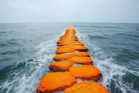 AI Generated. Serene Seascape with Concrete Walls at Dawn