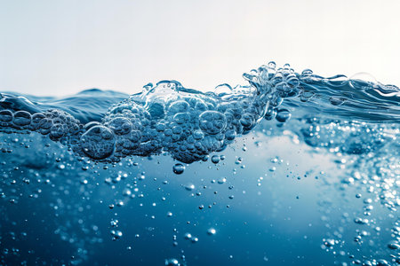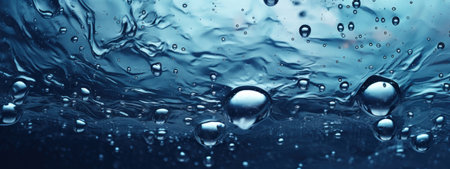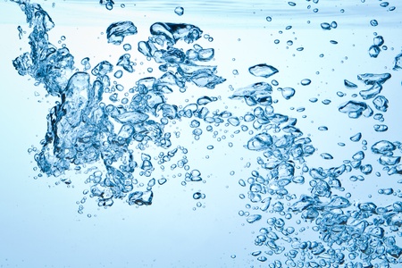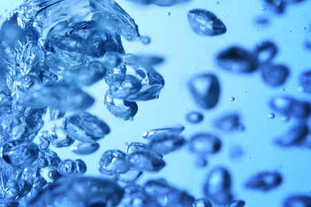 Clear water with air bubbles on blue background