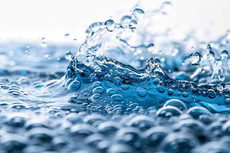 Water splash with bubbles, close-up, macro photography of water surface