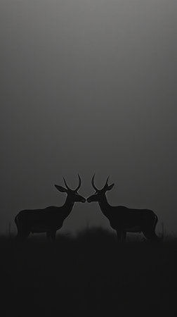 A silhouette of a deer stands gracefully among mist-covered trees, creating a serene and tranquil scene in natures embrace.