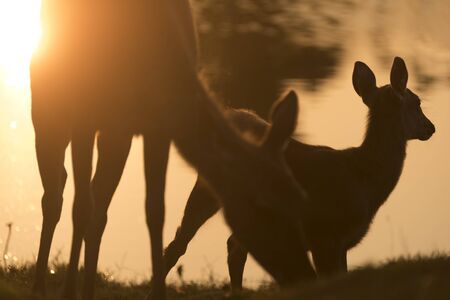 Family Sunset Deer at Thung Kraang Chaiyaphum Province, Thailand