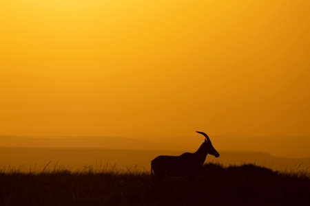 Silhouette of a gazelle (Aepyceros melampus) at sunset