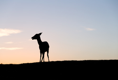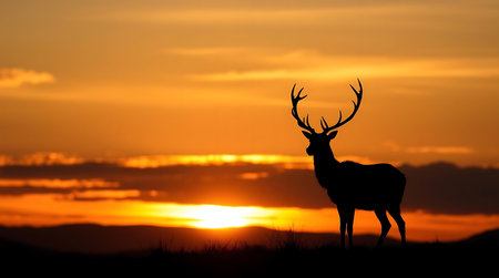 Silhouette of a deer at sunset beautiful background.