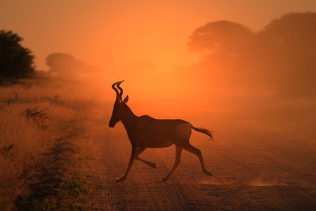 Red Hartebeest - Wildlife Background from Africa - Run of Golden Dust