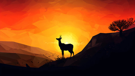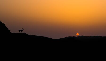 Silhouette of antelope on sunset background. Vector illustration.