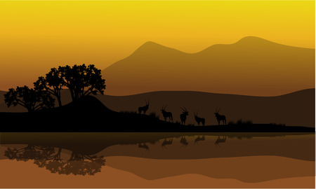 Silhouette of antelope in riverbank at the morning