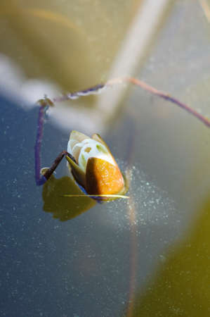 Bug species Ilyocoris cimicoides, trivial name: waterbug or the saucer bug.