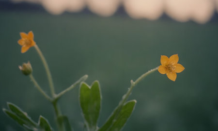 Small yellow flowers on a meadow in the morning. Shallow depth of field