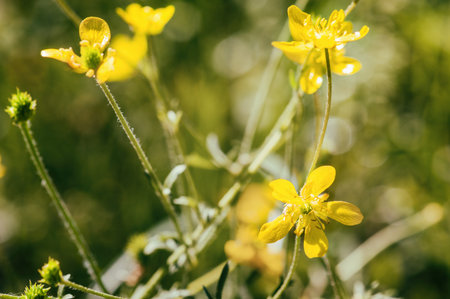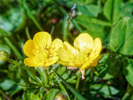 Buttercup (Ranunculaceae) blooming yellow flowers