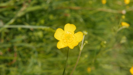 closeup yellow wildflower buttercup marsh