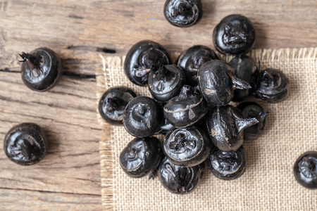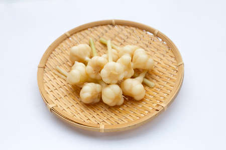 Pickled garlic in bamboo basket