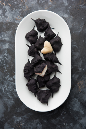 Macro close up of Huitlacoche corn edible fungus, traditional mexican dish, selective focus