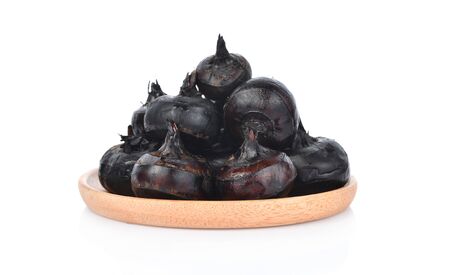 Waternut in wooden dish isolated on white background