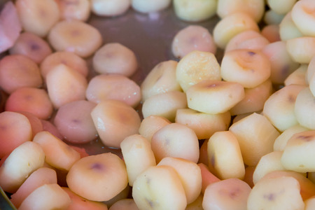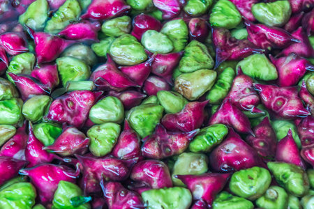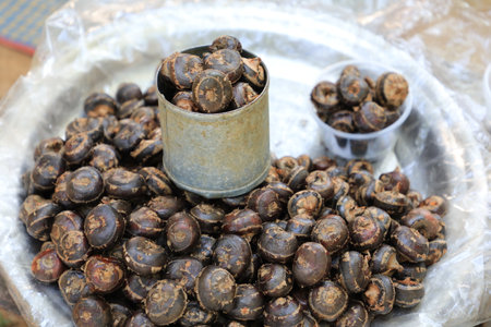 Pile of waternut or Chinese water chestnut in galvanized glass for sale in the market in the north of Thailand