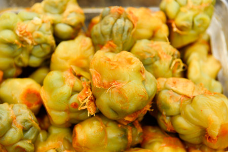 Sea pineapple (sea squirt) for sale at a seafood market in South Korea.