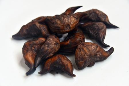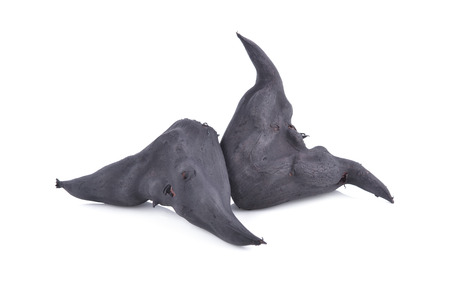 boiled bull horn Shaped Water Caltrop nut on white background