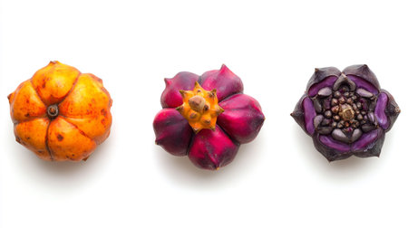 Apple. Peruvian root for vitality, energy and healty. Red Peruvian Maca on white background.