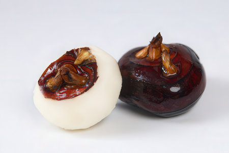 hyacinths bulbs on white background with water drops