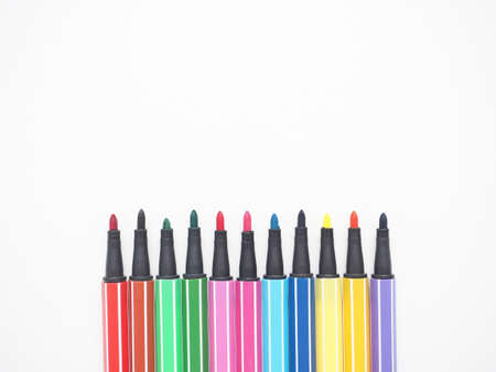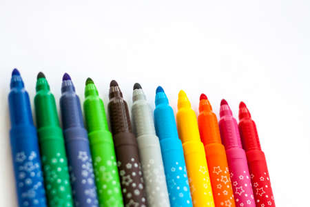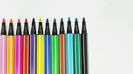 Colorful markers on white background With beautiful vibrant colors, great for kids, color, school , design or print themes