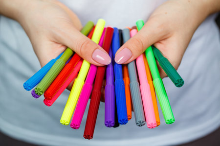 A set of multi-colored felt-tip pens for drawing and creativity. Drawing and coloring. Anti perfectionism.
