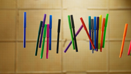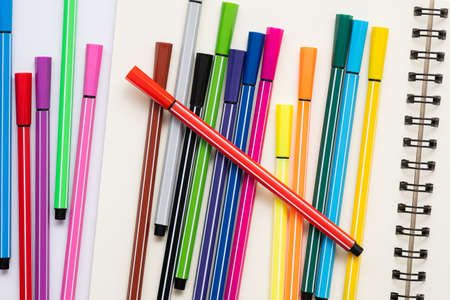 felt-tipped pen, a felt marker a variety of colors, placed on the edge of the frame, uneven ground, ready to create works and ideas