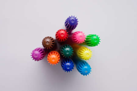 multicolored of magic colors (colours) for paint or draw on paper with copy space and vintage color effect on isolate background.