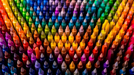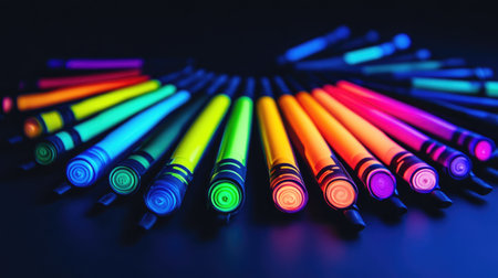 A stunning display of vibrant neon crayons arranged in a circular pattern against a dark background. Perfect for creative projects and artistic inspiration.