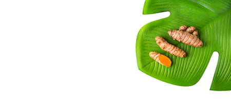 Fresh turmeric on white background,raw material for cooking. Close up.