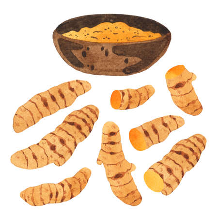 Turmeric powder. Turmeric or Curcuma is the spice that gives curry its yellow color. It has been used in India for thousands of years as a spice and medicinal herb.