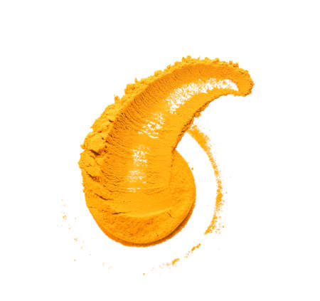 Dry turmeric powder or curcuma longa linn isolated on white background.