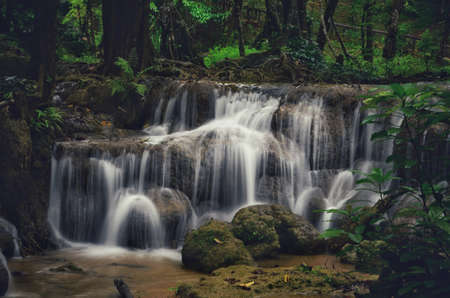 Beautiful waterfall in the forest with sunlight in the morning, Thailand