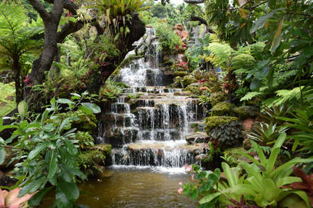 Beautiful waterfall in the tropical garden - Vintage effect picture style pictures
