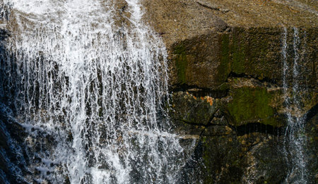 Detail of a waterfall with splashes of water as a background